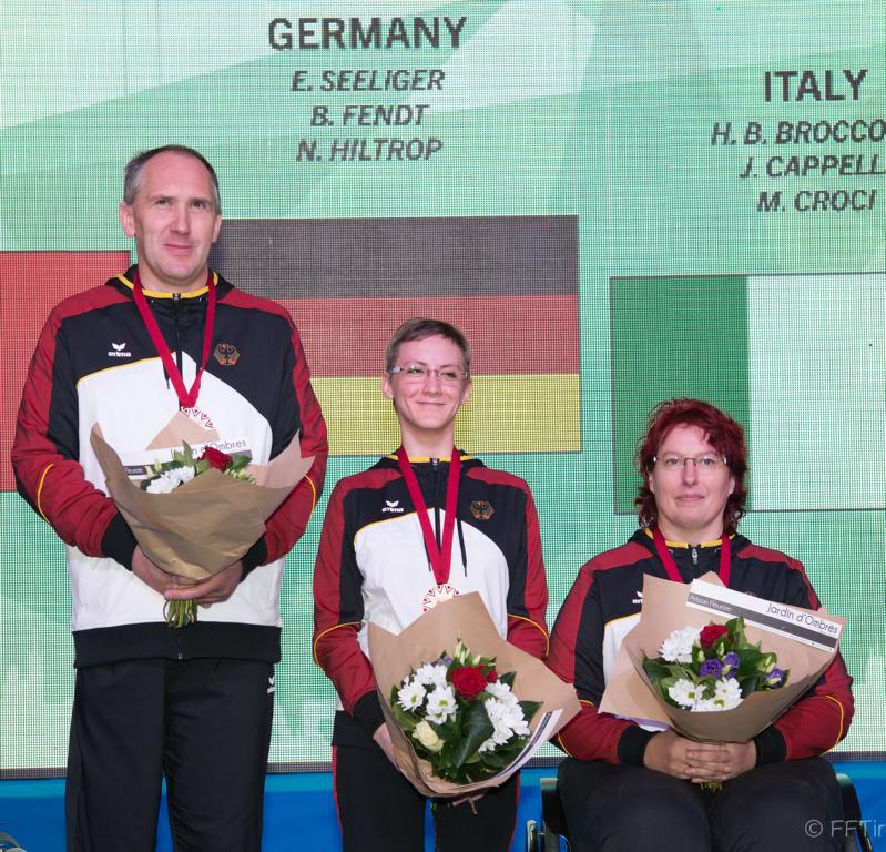 Mit der Mannschaft beim R6 50m Liegend kam Elke mit 1849,2 Ringen auf den 1. Platz und gewann somit Gold. Gastgeber Frankreich (1836,3) und die Mannschaft der Italiener (1834,3) wurden im Endergebnis deutlich auf Distanz gehalten.