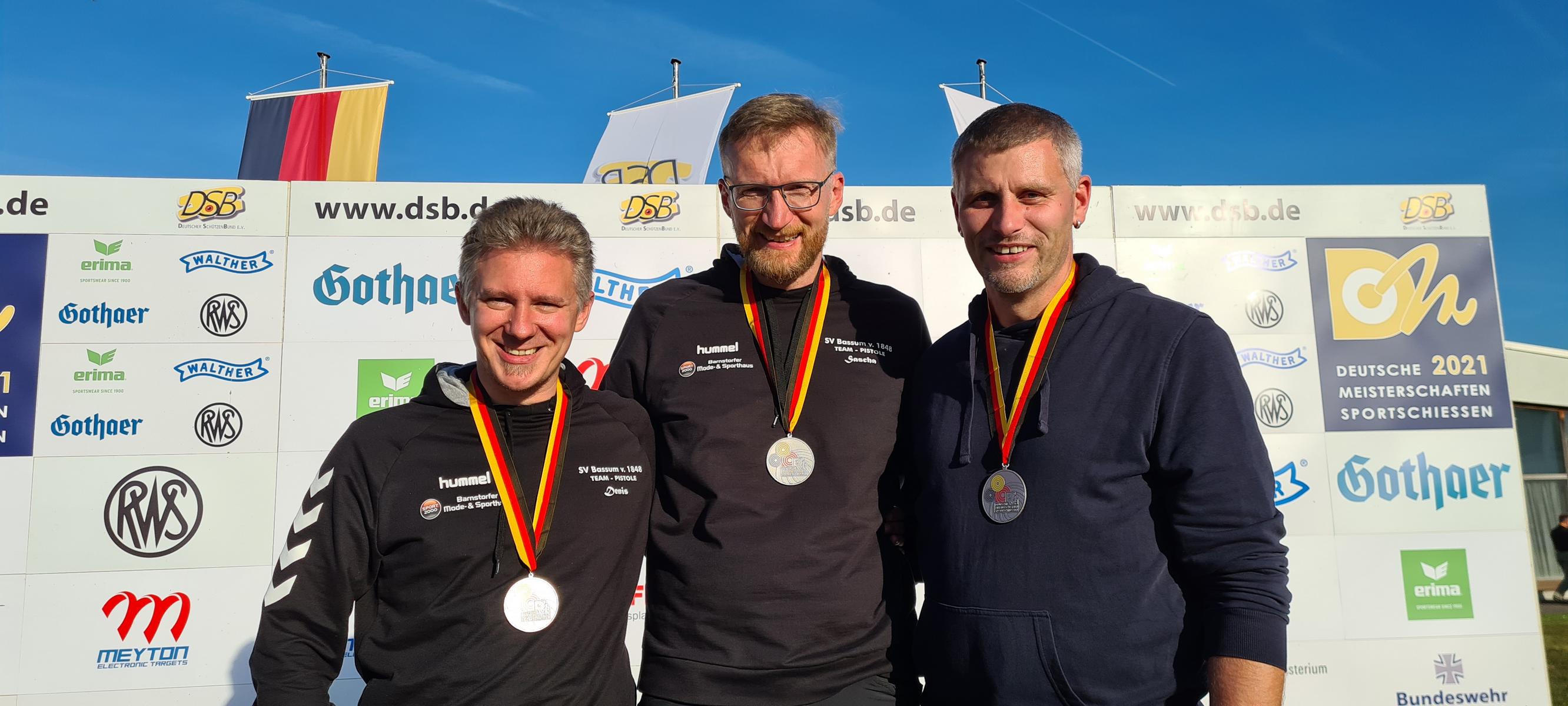Bei den Kurzwaffendisziplinen konnten die Teilnehmer aus NW ebenfalls jubeln. Die Mannschaft vom SV Bassum holten sich die Silbermedaille mit der 50m Pistole.