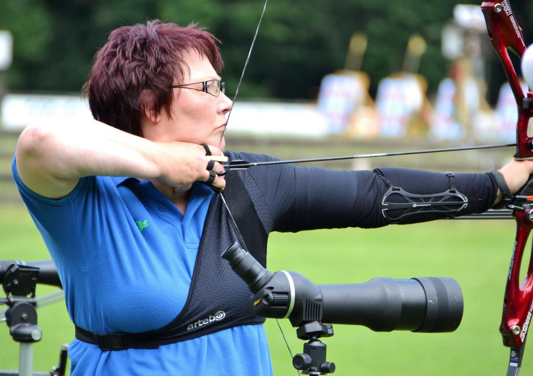 An der Weltrekordhalterin mit dem Recurve-Bogen Elke Heinz kam bei den diesjährigen DM niemand vorbei. Die Schützin vom SSV Tarmstedt sicherte sich souverän die Goldmedaille mit 632 Ringen und lag damit um 12 Ringen vor der Zweitplatzierten.