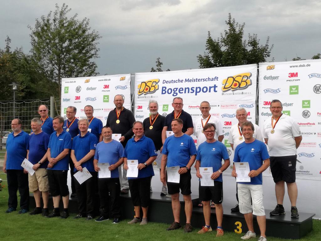 Über eine Medaille konnte sich auch die Recurve Herren-Altersmannschaft der BSG Osterholz-Scharmbeck freuen. Die Schützen Manfred Semke, Wilhelm Nitsch und Willi Hühnerbein sind bekanntlich immer für eine Medaille gut. Nach dem 3. Platz im Jahr 2016, wurde bei den diesjährigen DM mit 1801 Ringen die Goldmedaille. Eine starke Leistung!