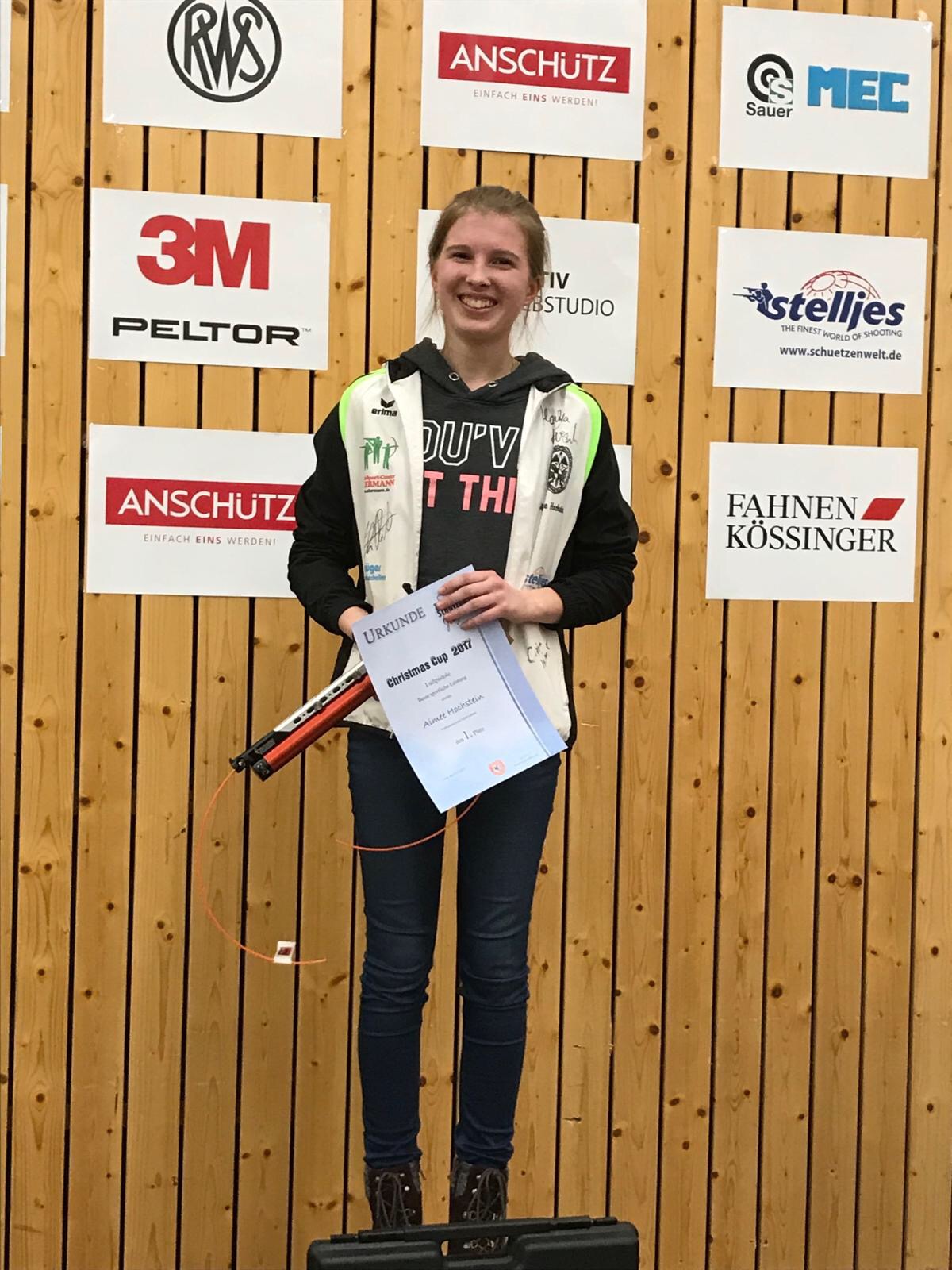 Vor Ort erlebten sie eine hervorragend organisierte Veranstaltung und jede Menge sportliche Bestleistungen. Am Ende des Tages und nach einigen spannenden Wettkämpfen sowie vielen tollen Ergebnissen, standen alle Sieger fest. Ganz vorne dabei war auch der NWDSB: Aimee Hochstein konnte sich in ihrer Wertungsklasse gegen die starke Konkurrenz durchsetzen und belegte am Ende den ersten Platz. Als Preis für die Siegerin gab es eine nagelneue Pardini Luftpistole, die Aimee überglücklich und freudestrahlend entgegennahm. Ebenfalls gut im Rennen waren Lena Löhmann und Jan Luca Karstedt, die jeweils auf dem dritten Platz landeten.