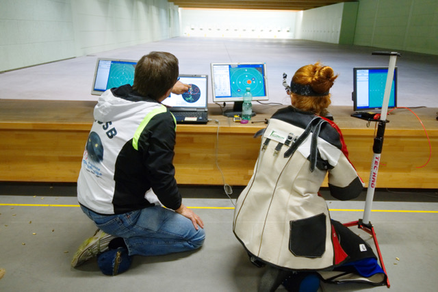 Die Erkenntnisse aus dem Vormittag wurden anschließend genutzt, um am Samstagnachmittag und am Sonntag gemeinsam an den Anschlägen zu arbeiten und systematisch die erkannten Potenziale zu nutzen. Dabei wurden unter anderen auch zwei Zielweganalysesysteme (Scatt) eingesetzt, um noch besser sehen zu können, wie die Schützen sich dem Ziel annähern, zielen, abziehen und nachhalten.